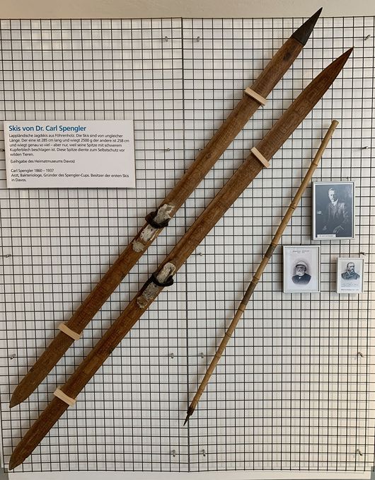 Carl Spengler leitete das Sanatorium Alexanderhaus und forschte an der Tuberkulose und an Krebskrankheiten. Aber er war auch begeisterter Sportler. Das Wintersportmuseum in Davos beherbergt seine Ski. Die Lappländischen Jagdski sind aus Föhrenholz. Sie waren die ersten Ski in Davos. Auffallend ist, dass sie nicht gleich lang sind: Der eine Ski ist 285 cm lang, der andere 258 cm. Dennoch sind beide Ski gleich schwer, da der kürzere Ski mit einem Kupferblech beschlagen ist. Diese Spitze diente zum Schutz vor wilden Tieren.